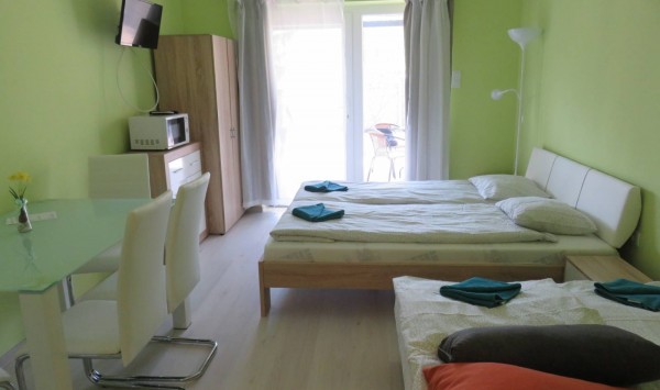 - Elhelyezés: 4 apartmanos ház, minden apartman Tv-vel, fürdőszoba/WC-vel, saját felszerelt konyhával, saját elkülönített terasz-résszel rendelkezik; füvesített udvar tűzrakóhellyel, parkolás a házhoz közeli díjmentes utcai parkolóban megoldott Elhelyezés: csak földszinten; 2 ágyas, kinyitható kanapéval 1-2 gyermek részére pótágyazható pótágyazható, fürdőszobás/konyhás, egyszobás apartmanokban